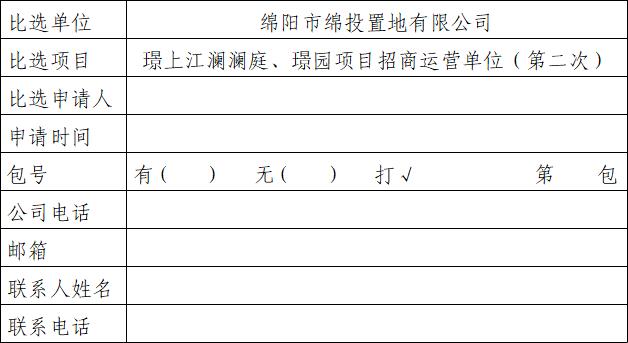 上述所有資料須加蓋比選申請(qǐng)人鮮章,到綿陽市經(jīng)開區(qū)璟上江瀾營銷中心3樓314室報(bào)名、購買比選文件,文件售價(jià)為人民幣0元,售后不退。