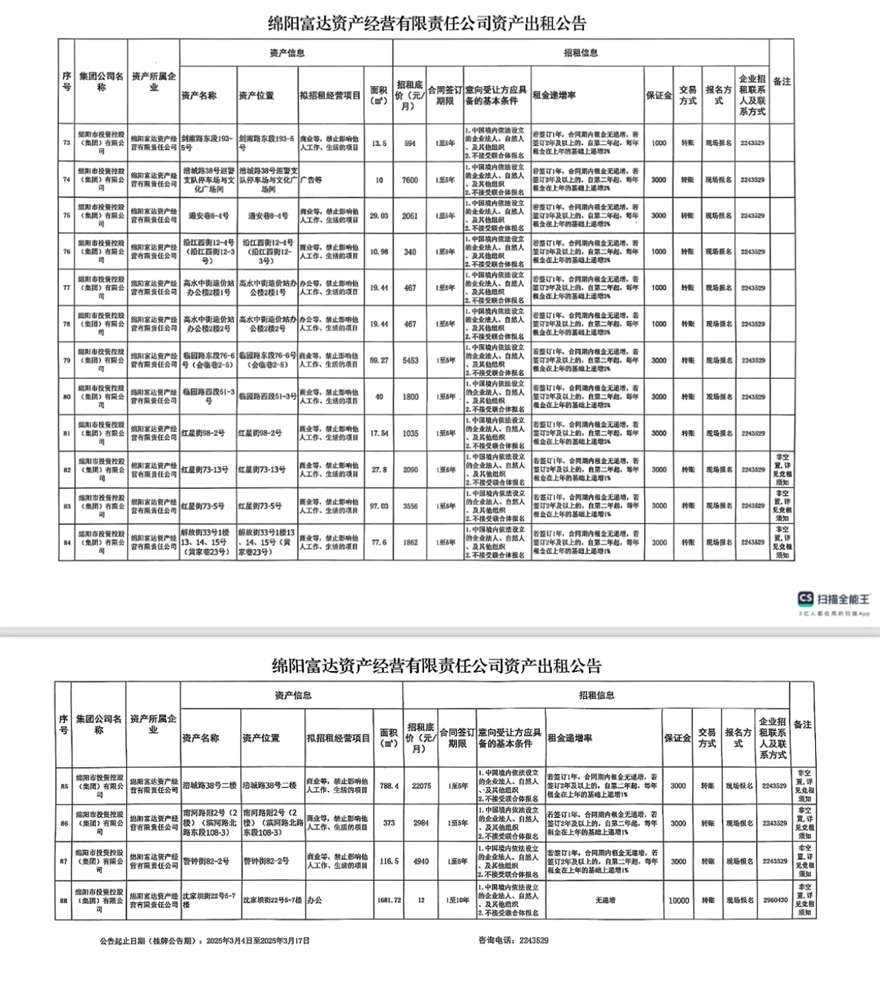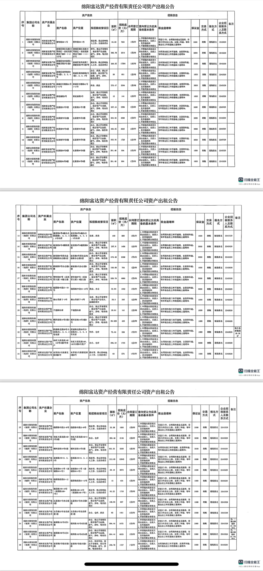 綿陽富達資產經(jīng)營有限責任公司資產出租公告