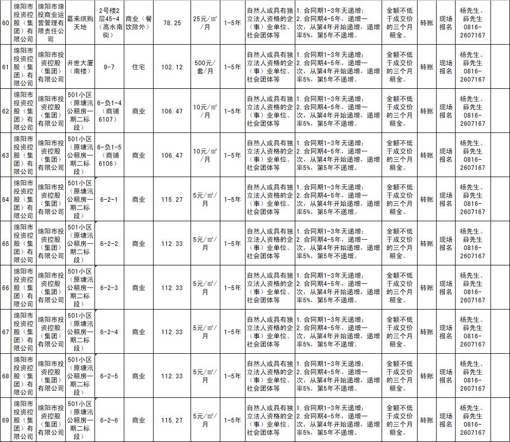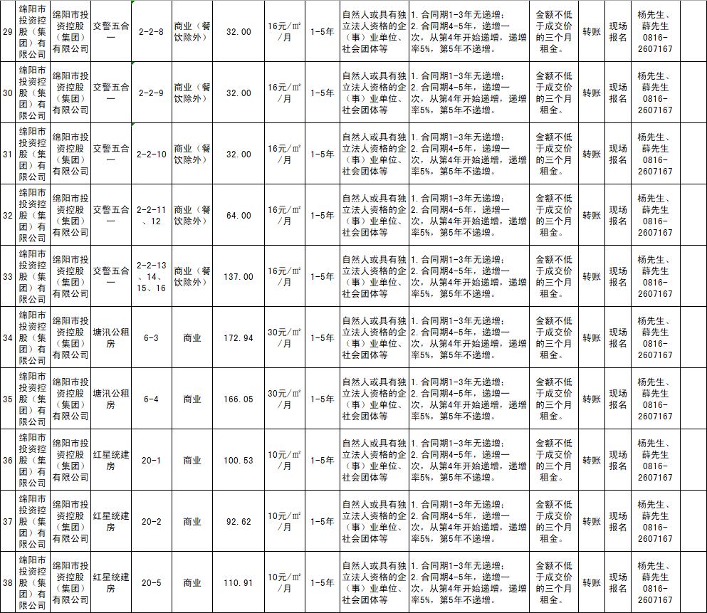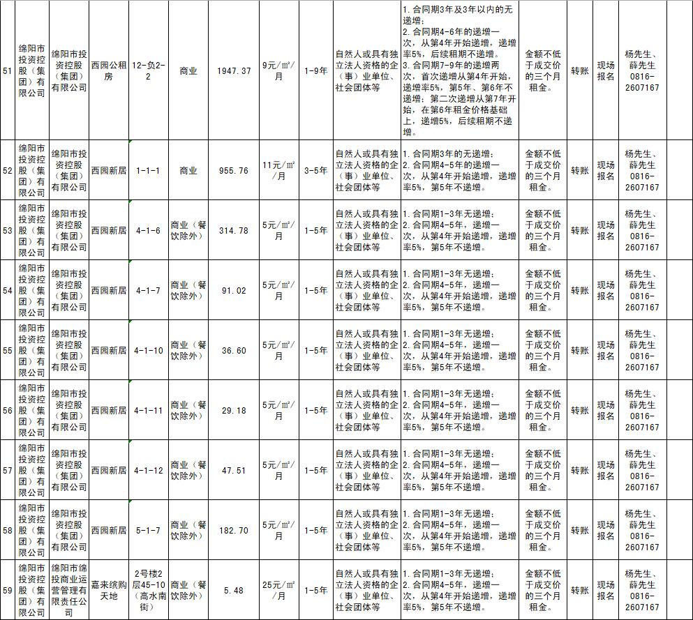 綿陽市綿投商業(yè)運(yùn)營管理有限責(zé)任公司資產(chǎn)出租公告