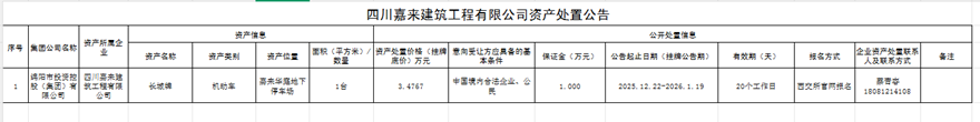 四川嘉來(lái)建工工程有限公司資產(chǎn)處置公告